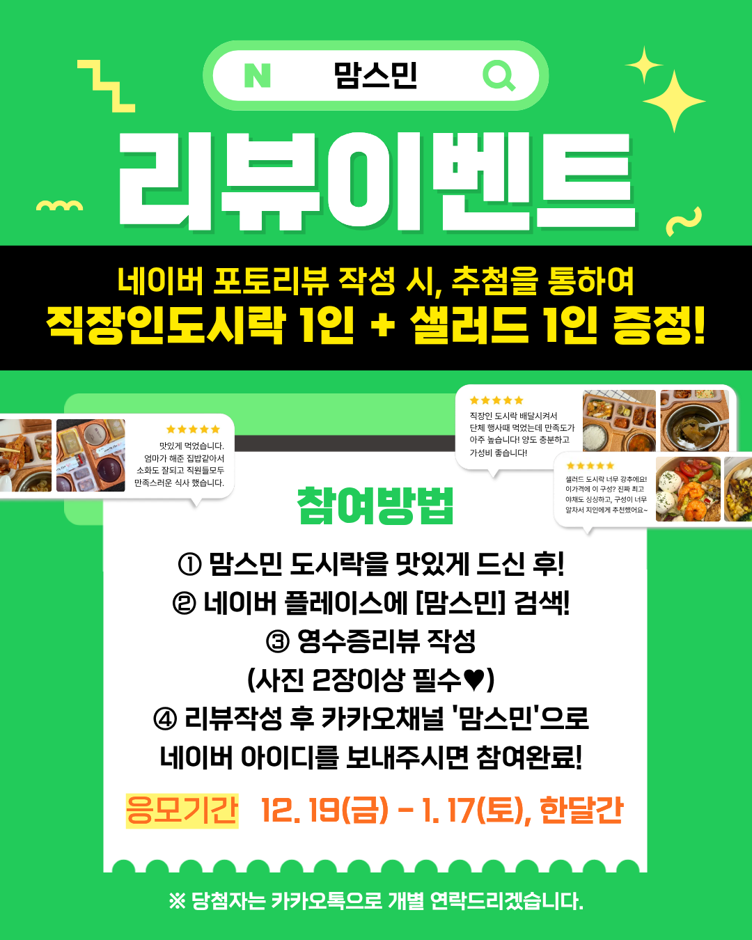 추첨을 통해 '직장인 도시락+샐러드' 세트를 선물로 드려요!❤️